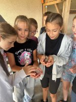 W ubiegły wtorek w ramach lekcji wychowawczej uczniowie klasy 5 mieli wyjątkową okazję odwiedzić dom swojej koleżanki, Martynki, która wraz z rodziną opiekuje się pięknymi papugami. Papugi zrobiły na wszystkich ogromne wrażenie. Zachwyciły przede wszystkim swoim kolorowym upierzeniem. Rodzice Martynki opowiedzieli piątoklasistom, jak wygląda codzienna opieka nad ptakami, co jedzą, jakie mają zwyczaje i jak ważne jest zapewnienie im odpowiednich warunków do życia. Dla wielu uczniów była to pierwsza okazja, by z bliska zobaczyć tak egzotyczne ptaki. Spotkanie zakończyło się podziękowaniami dla Martynki jej rodziny za miłe i słodkie przyjęcie