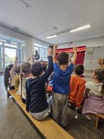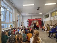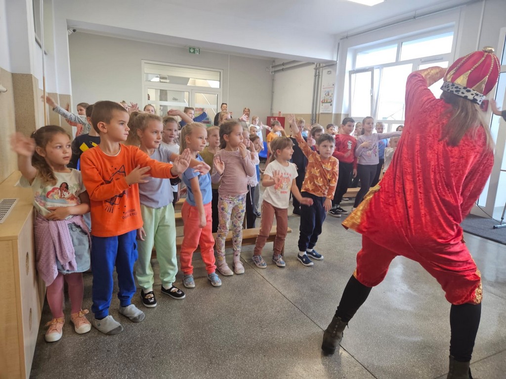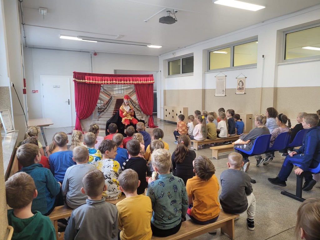 W czwartek, 23 października, w naszej szkole gościł Teatr Kurtyna z Krakowa, który zaprezentował trzy spektakle profilaktyczne dla różnych grup wiekowych. Uczniowie klas VII–VIII obejrzeli przedstawienie „Influencerka”, poruszające temat depresji, hejtu i iluzji świata wirtualnego. Dla klas IV–VI przygotowano spektakl „Pozorna gra”, ukazujący zagrożenia wynikające z uzależnień od internetu i gier komputerowych. Najmłodsze dzieci – przedszkolaki i uczniowie klas I–III – uczestniczyły w bajce profilaktycznej „Tajemnica zaginionych książek”, uczącej, czym jest zdrowy styl życia, przyjaźń i odpowiedzialność.