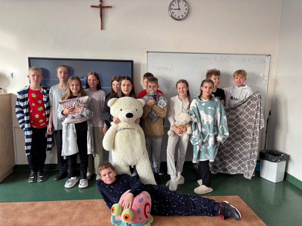 W dniu 13 listopada, z inicjatywy Samorządu Uczniowskiego, odbył się w szkole Dzień Piżamy. W nawiązaniu do Dnia Snu, który organizowaliśmy w poprzednich latach, uczniowie zaprezentowali stroje i akcesoria służące wygodnemu odpoczynkowi nocnemu.