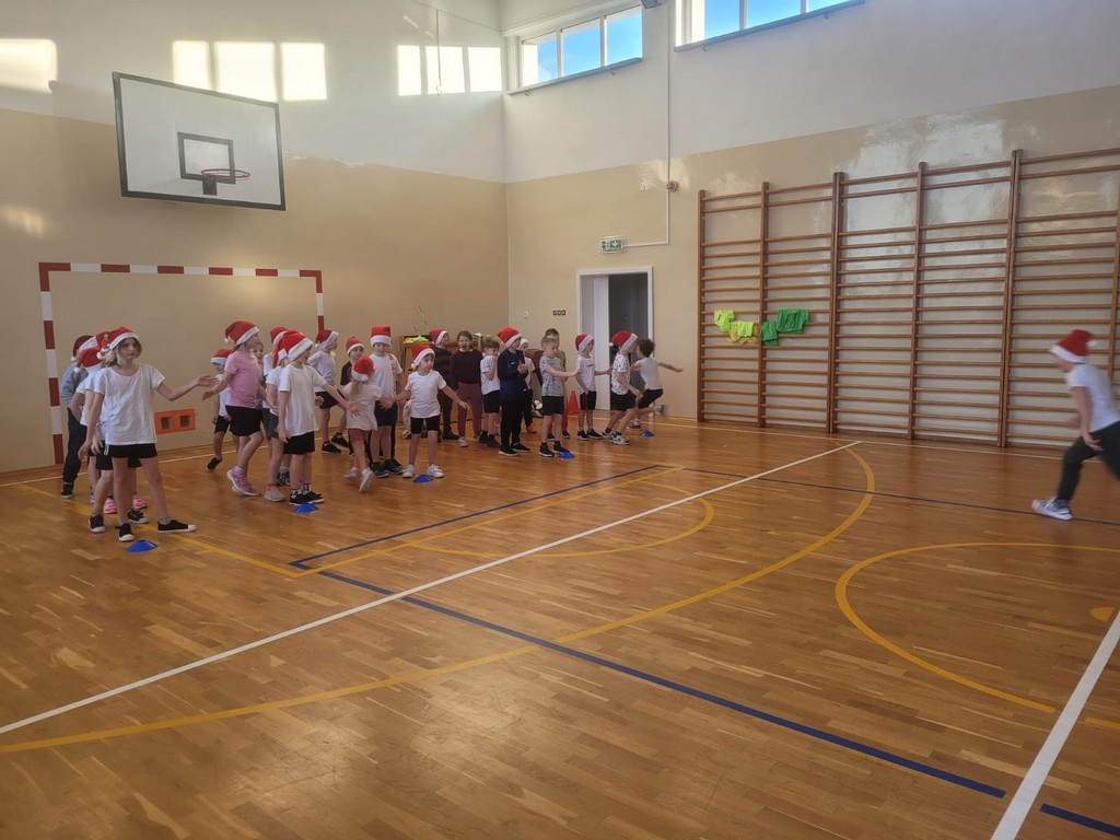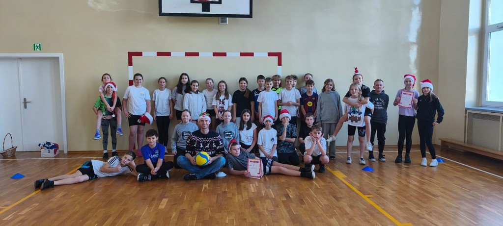 W dniu 10.12.2025 w sali gimnastycznej odbył się coroczny turniej Mikołajkowy. Atmosfera była wyjątkowa - szkole wypełniały świąteczne dekoracje a uczniowie byli w tym dniu wyposażeni w czapki świętego Mikołaja. Uczniowie rywalizowali w wyścigach rzędów, grali w dwa ognie oraz w siatkówkę. Zawody przebiegały w duchu zdrowej rywalizacji, współpracy oraz dobrej zabawy. Na koniec święty Mikołaj przygotował dla każdego ucznia drobny poczęstunek. Turniej Mikołajkowy zakończył się wspólnym zdjęciem i gromkimi brawami dla wszystkich uczestników.