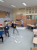 Dla większości uczestników zabawa sztucznym śniegiem przyniosła wiele radości, to jednak największą frajdę sprawiła uczniom “bitwa” na papierowe śnieżki. Oprócz zajęć zaplanowanych organizatorzy półkolonii przygotowali niespodziankę dla dzieci w postaci warsztatów z panią sołtys Barbarą Herok. Pani Basia wspólnie z uczniami wykonała zimowe ludki z filcu. Zajęcia te zostały zorganizowane we współpracy z Gminnym Ośrodkiem Kultury w Gogolinie – za co serdecznie dziękujemy.