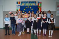 Dnia 9 maja w naszej szkole odbyły się różne działania związane z obchodami Dnia Europy. Nadrzędnym założeniem podjętych działań jest propagowanie patriotyzmu do naszej ojczyzny Polski, by uczniowie czuli się Europejczykami, ale by wiedzieli też co nas odróżnia od innych narodów i co możemy wnieść z naszego dziedzictwa kulturowego do wspólnoty państw europejskich. Klasa 8a pod kierownictwem swojej wychowawczyni pani Marioli Więckowskiej wykonała więc gazetkę oraz przedstawiła krótką prezentację o znaczeniu Polski w UE. Wszyscy uczniowie wspólnie odśpiewali hymn Polski i UE. We wszystkich klasach tego dnia nauczyciele zaprosili dzieci na krótką podróż po Europie, która przybliżyła im niektóre kraje Unii Europejskiej i mamy nadzieję, że powiększyła grono jej entuzjastów. Uczniowie z różnych klas mieli okazję wziąć udział w quizach, zagadkach o krajach Unii Europejskiej, chętni uczniowie wykonali album/plakat na ten temat, dowiedzieli się kim są nasi europejscy sąsiedzi, a nawet jakie smakołyki serwują i z których słyną poszczególne kraje.