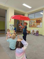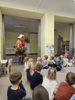 23 września powitaliśmy w przedszkolu jesień. Dzieci przyszły ubrane w jesienne kolory, a Pani Jesień przyniosła koszyk pełen darów. Wspólnie rozwiązywaliśmy zagadki i tworzyliśmy jesienne prace plastyczne. Mamy nadzieję, że jesień przyniesie nam jeszcze wiele radosnych chwil na świeżym powietrzu.