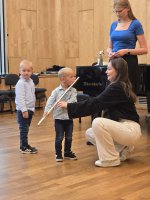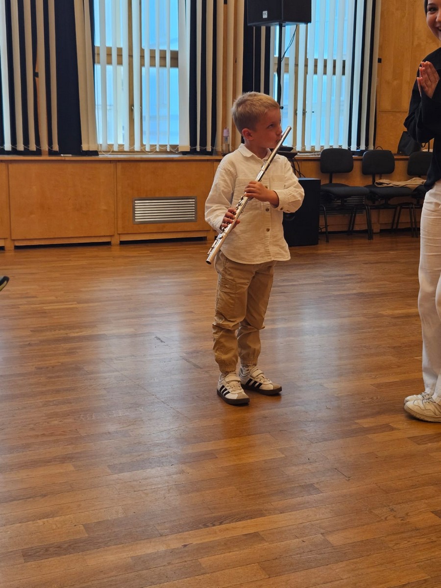 Przedszkolaki miały okazję poznać brzmienie fletu poprzecznego i fagotu oraz usłyszeć różnorodne dźwięki wydobywane z tych instrumentów. Dzieci odgadywały zagadki muzyczne, które były zagrane na instrumentach — i choć nie były one łatwe, odniosły sukces! Chętne przedszkolaki miały także możliwość zagrać na flecie poprzecznym.