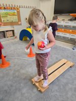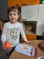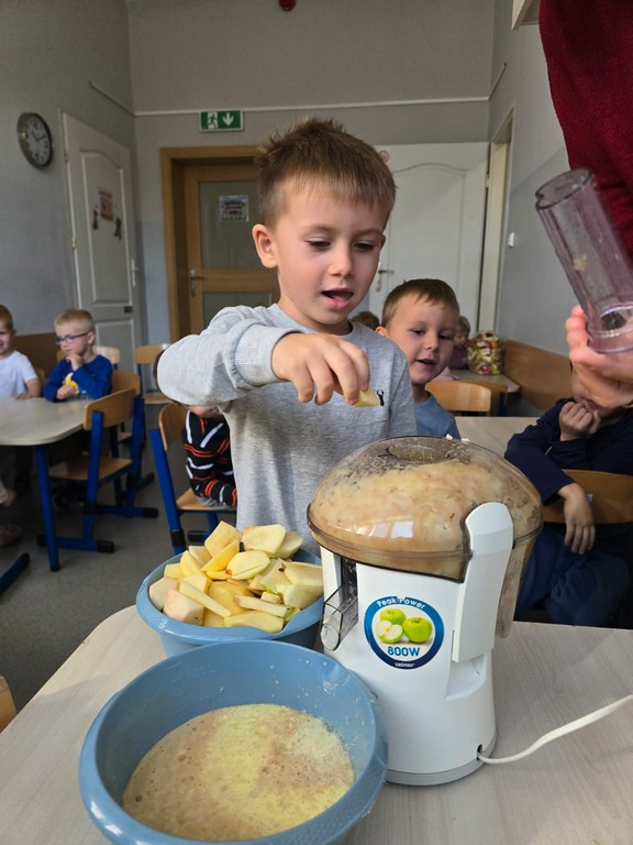 Przedszkolaki wykonały jabłkową pracę plastyczną, posmakowały soku ze świeżo wyciskanych jabłek, a także wzięły udział w zabawach ruchowych z jabłkiem w roli głównej.