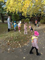 Spacer był nie tylko okazją do zabawy i twórczej aktywności, ale także do nauki – dzieci mogły utrwalić nazwy drzew i ich liści, obserwować zmiany zachodzące w przyrodzie oraz rozwijać wrażliwość estetyczną.