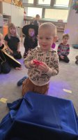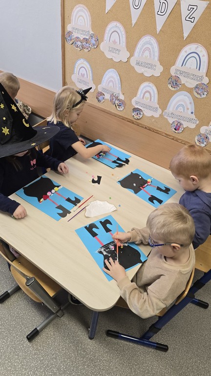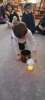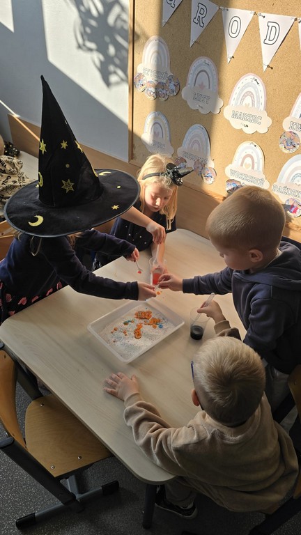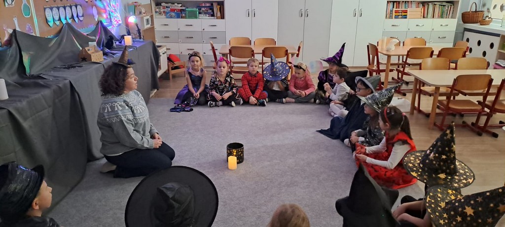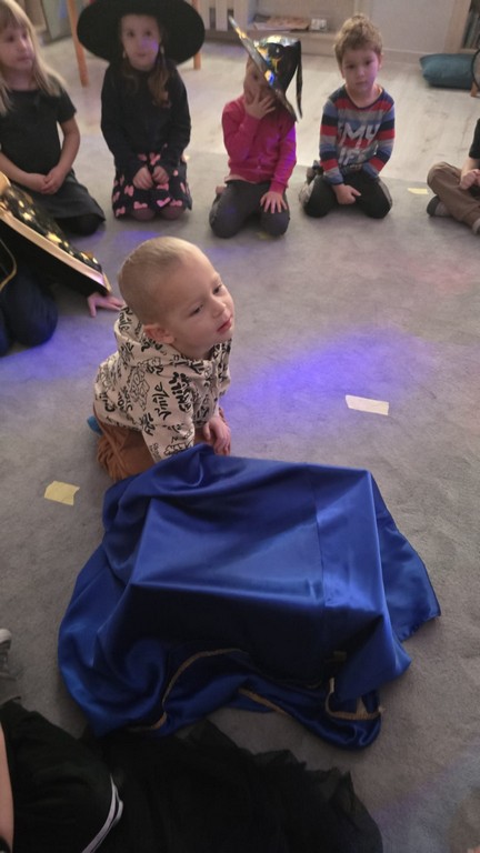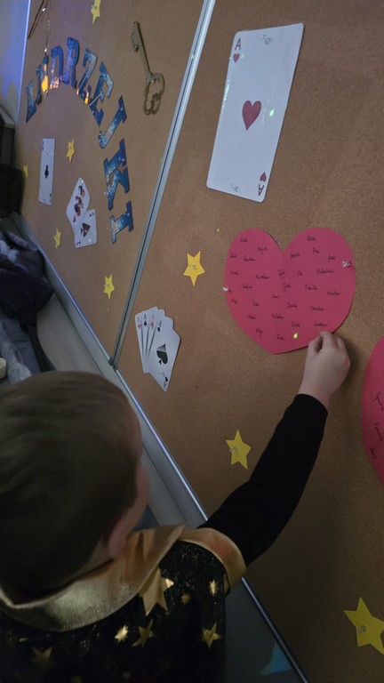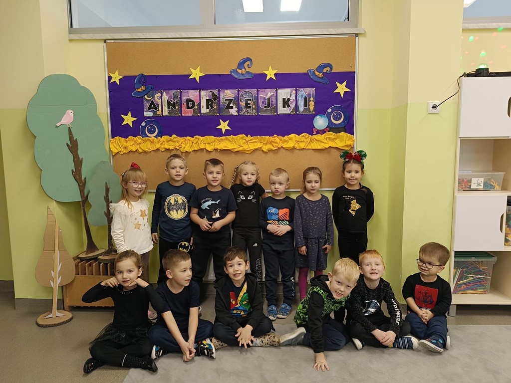 W piątek, 28 listopada, nasze Przedszkolaki przeniosły się w magiczny świat andrzejkowych wróżb. Przebrane za czarodziejów i wróżki, ustawiały buty, losowały atrybuty różnych zawodów i z ciekawością odkrywały, co może je czekać w przyszłości. Chłopcy poznawali imię swojej przyszłej żony, a dziewczynki — przyszłego męża.