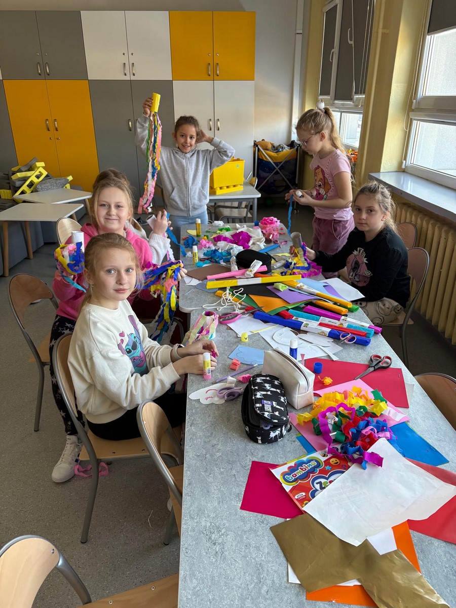 Zimowe dni ciągną się coraz bardziej. Alerty smogowe nie zachęcają do zabaw na świeżym powietrzu. Każdy z upragnieniem wypatruje wiosny. Aby wprowadzić troszkę radości w naszą codzienność, na ostatniej świetlicy wykonaliśmy kolorowe łapacze snów. Do ich stworzenia wystarczyły rolki po papierze toaletowym i bibuły. Gotowe łapacze powiewały na szkolnym korytarzu niczym Gaik-Maik. Docelowo można je zawiesić nad łóżkiem, by wyłapywały najpiękniejsze sny.