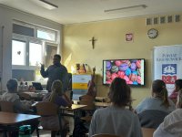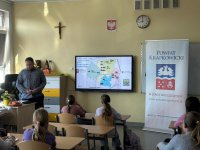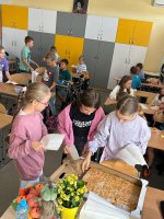 Na początku uczniowie wzięli udział w prelekcji na temat dziedzictwa kulturowego i historycznego terenu powiatu krapkowickiego, po której przyszedł czas na quiz wiedzy dotyczący powiatu. To wyjątkowe spotkanie połączyło odkrywanie lokalnego dziedzictwa z degustacją jednego z najbardziej rozpoznawalnych symboli regionu – kołacza śląskiego. W trakcie wydarzenia uczestnicy mieli okazję nie tylko spróbować tradycyjnego wypieku, ale także poznać jego historię, symbolikę oraz sekrety z nim związane i przekazywane z pokolenia na pokolenie.