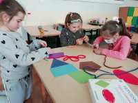 W czasie zajęć świetlicowych uczniowie mają okazję do skorzystania z zabaw zręcznościowych polegających na nawlekaniu koralików na kolorowe sznurki, wstążki, druciki, by stworzyć swoje pomysłowe naszyjniki, bransoletki czy obrazki. Jest to również doskonała okazja do nauczenia się wiązania butów oraz ozdobnych kokardek i splotów.