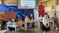 Piątoklasiści zapewnili rozrywkę na najwyższym poziomie, przygotowując skecze związane z pracą w szkole – począwszy od scen w gabinecie pani dyrektor, po lekcje czy posiedzenie rady uczniowskiej.