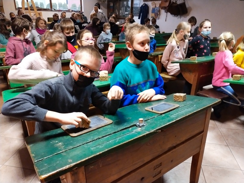 W dniu 26.11.2021 r. uczniowie z klas III, IV, V i VIII wyjechali na wycieczkę do Kopalni Srebra w Tarnowskich Górach i Muzeum Chleba w Radzionkowie. Do kopalni zjechaliśmy wielką windą, zjazd trwał równo 17 sek. Mieliśmy zielone i żółte kaski. Chodziliśmy podziemnymi krętymi korytarzami, w niektórych miejscach było nisko i trzeba było się schylać. Żeby przejść na drugą stronę kopalni trzeba było przepłynąć łódkami. Łódki się chwiały i zahaczały o ściany. Zwiedzanie kopalni było okazją do zobaczenia świata pod ziemią. Po zwiedzeniu kopalni pojechaliśmy na obiad do Mc Donald’s i każdy zamówił co chciał. Po obiedzie zwiedziliśmy Muzeum Chleba. W muzeum każdy miał okazję upiec swoją bułkę, potem poszliśmy zobaczyć film o szacunku do chleba i zwiedzić kolekcję starych sprzętów domowych. Na koniec zasiedliśmy w ławkach starej szkoły, gdzie czekały na nas niełatwe zadania matematyczne. Wszyscy wrócili z wycieczki pełni wrażeń.