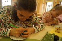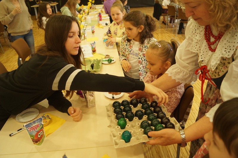W dniu 29 marca, grupa naszych uczennic z klas III-VIII, wzięła udział w Warsztatach Kroszonkarskich zorganizowanych przez Gminny Ośrodek Kultury w Gogolinie. Prowadząca zajęcia, pani Barbara Herok, rozpoczęła spotkanie od prezentacji filmu pt. „Rok obrzędowy w Gminie Gogolin - Wielkanoc”. Następnie opowiedziała wiele ciekawostek wielkanocnych związanych z tradycjami i historią naszego regionu. Zaprezentowane metody zdobienia jajek, budowanie kwiecistych wzorów można było od razu zastosować w zajęciach praktycznych. Kolor barwienia jajek ma swoją symbolikę, przygotowując jajko myślimy o osobie, którą chcemy obdarować.
