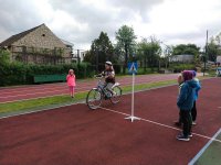 W dniu 15 maja, na boisku szkolnym, odbyła się praktyczna część egzaminu na kartę rowerową. Uczniowie mieli do pokonania trasę, na której znajdowało się przejście dla pieszych, przejazd kolejowy oraz wjazd na rondo. Trzeba było wykazać się umiejętną jazdą rowerem i znajomością zasad sygnalizowania swojego zachowania na drodze. Gratulujemy zdobycia pierwszego prawa jazdy!
