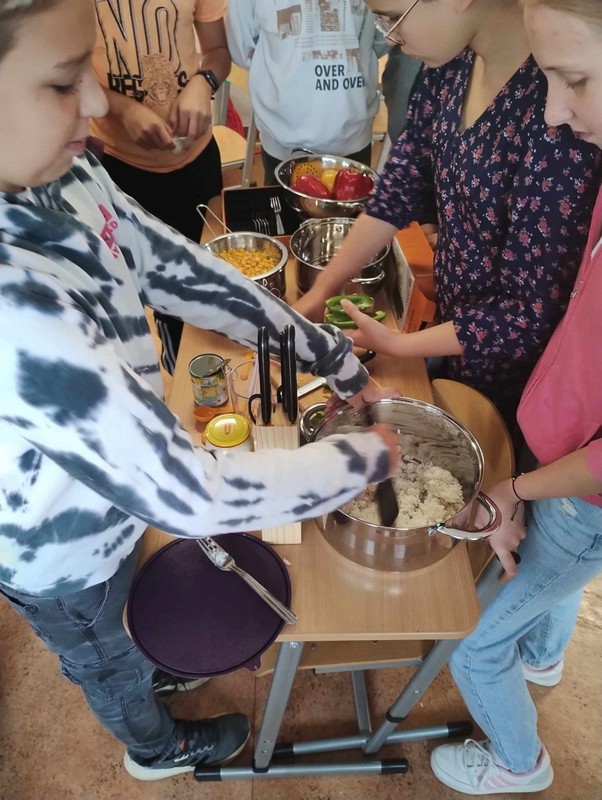 Jak co rok, na początku października w naszej szkole odbył się Dzień Chiński. Całodzienne pokazy filmów i zdjęć z podróży do Chin przedstawiał ubrany w tradycyjny strój chiński nauczyciel historii w PSP Malnia - Pan Joachim Stiebler. Ale w tym roku poza pokazaniem rekwizytów z Chin i Dalekiego Wschodu były też przygotowania sałatek składających się z potraw azjatyckich - jak pędy młodego bambusa, ryż, kiełki fasoli mung, paluszki krabowe oraz nasze polskie warzywa. Kiedy sałaki już były gotowe wszyscy uczniowie, przedszkolaki oraz pracownicy szkoły mogli sałatki degustować. Jak smakowało? Zapytajcie.....