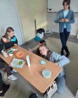 Napięcie powierzchniowe to zjawisko występujące na styku cieczy z ciałem stałym, inną cieczą oraz styku cieczy z gazem (np. z powietrzem). Objawia się powstaniem na powierzchni cieczy cienkiej sprężystej błonki. Krople wody otoczone są taką sprężystą błonką. Ta sprężysta błonka pozwala utrzymać na powierzchni wody np. owada, spinacz biurowy, a nawet monetę. Mogli się o tym przekonać na lekcji fizyki uczniowie klasy 7. Udowodnienie tego okazało się jednak nie takie proste- po wielu próbach udało się to wytrwałej Marzenie. Brawo!