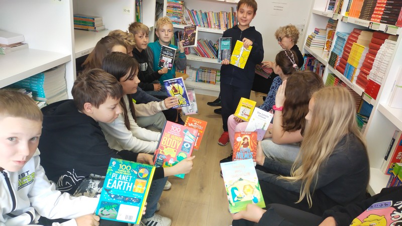 W ostatnim czasie nasza biblioteka szkolna wzbogaciła się o nowe zakupy książkowe, w tym lektury, słowniki językowe oraz literaturę anglojęzyczną. W czasie jednej z lekcji języka angielskiego uczniowie klasy piątej mieli okazję doświadczyć czytania książek w języku obcym, zarówno książek wcześniej im znanych w wersji polskiej, jak również zupełnie nowych. Zakupione książki zawierają różne stopnie zaawansowania znajomości języka angielskiego, do wypożyczenia czekają min. Harry Potter, Dziennik Cwaniaczka, Mały Książę, Tajemniczy Ogród, Kubuś Puchatek i inne.