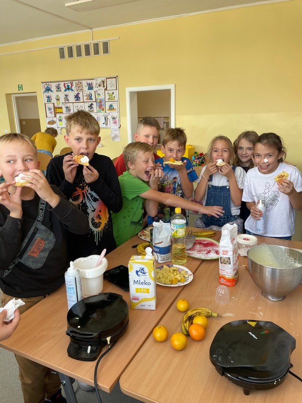 Kto z nas nie lubi gofrów? Podawane na słodko lub wytrawnie, z owocami i bitą śmietaną lub gofry warzywne – opcji do wyboru jest naprawdę wiele. Według skandynawskiej filozofii szczęścia ten przysmak można określić jako „hygge”, czyli tworzy błogą, ciepłą atmosferę, pozwala na cieszenie się dobrymi rzeczami w życiu. Uczniów bardzo ucieszył pomysł zorganizowania dnia gofra, każdy przyniósł coś, z czym zjadł swój upieczony w szkole, słodki przysmak. Były tradycyjne gofry z cukrem pudrem, ale również z bitą śmietaną i owocami.