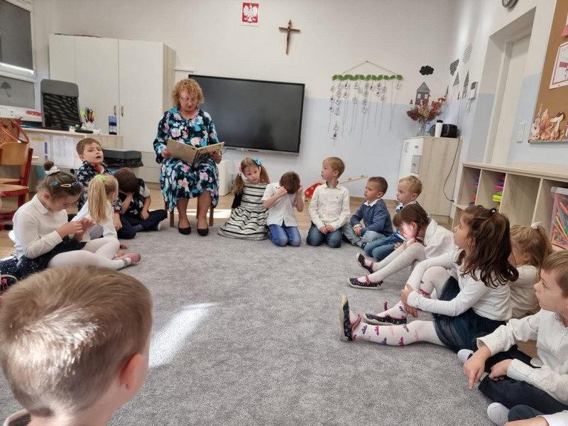 Pani Sołtys przeczytała dzieciom swoją ulubioną bajkę z dzieciństwa pt. „Siedem kruków” z książki „Cynowy żołnierzyk i inne bajki”, a z kolei ksiądz proboszcz bajkę pt. „Dumna królewna”.