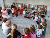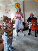 W środę 5 marca do naszego przedszkola przyjechały Panie z Fabryki Dziecięcych Uśmiechów. Poprowadziły ciekawe zajęcia muzyczne w których wykorzystały utwory W.A. Mozarta. Przywiozły ze sobą instrumenty - wiolonczelę oraz flet poprzeczny. Dzieci mogły spróbować gry na wiolonczeli oraz wykonały jeden utwór wspólnie z wykorzystaniem bum bum rurek. Otoczeni piękną muzyką miło spędziliśmy czas.