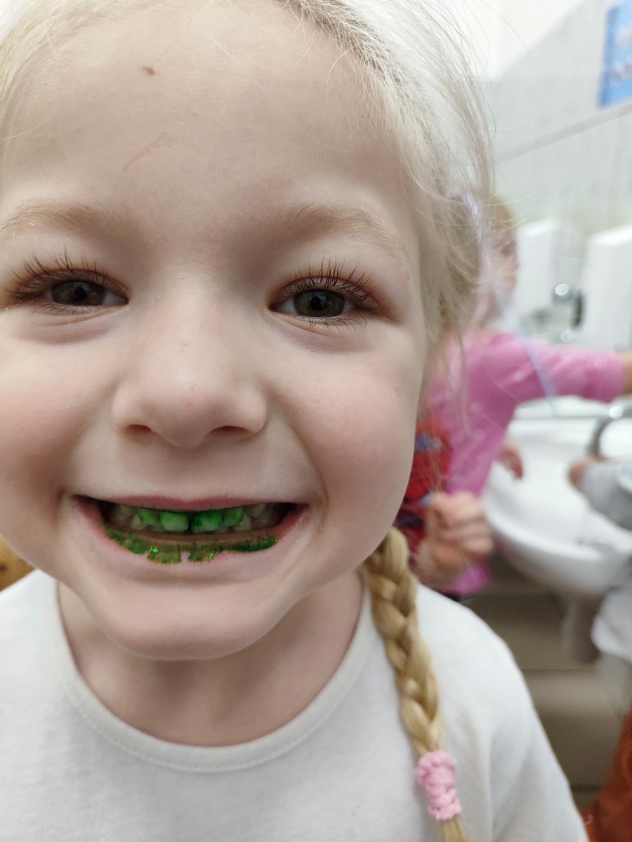 Zdrowe zęby to piękny uśmiech! 5 marca obchodziliśmy w naszym przedszkolu "Dzień Dentysty". Przedszkolaki miały okazję dowiedzieć się jak dbać o higienę jamy ustnej, aby ząbki były zawsze zdrowe, a uśmiech błyszczał czystością. Dzieci wskazywały jakie produkty powinniśmy jeść by nasze zęby były zdrowe.  Omawianie z przedszkolakami tego typu działań ma na celu zwrócenie uwagi na codzienne szczotkowanie zębów i dbanie o higienę jamy ustnej, ale również niwelowanie lęku i strachu przed wizytą u stomatologa.