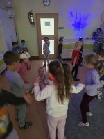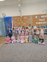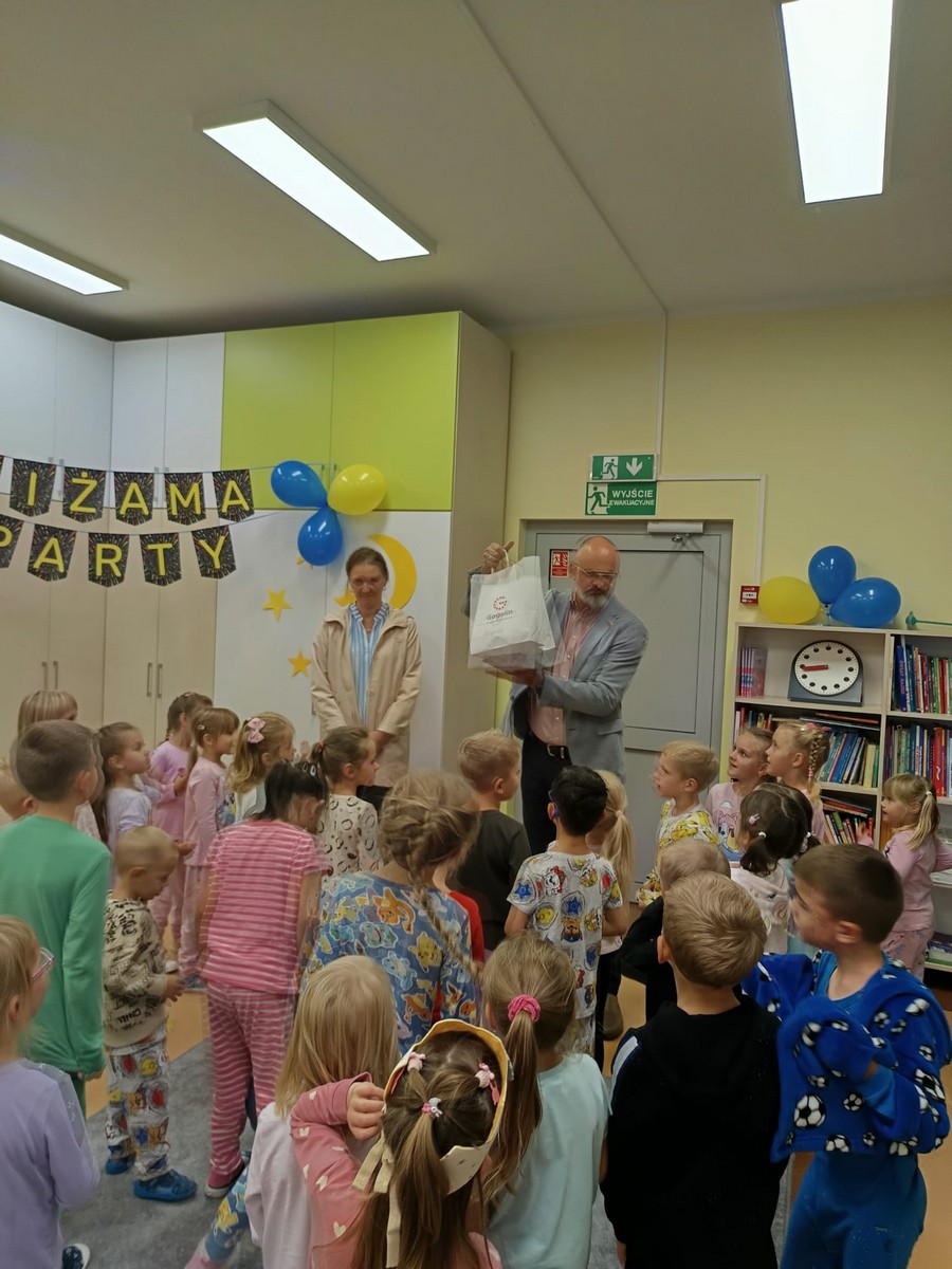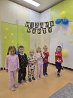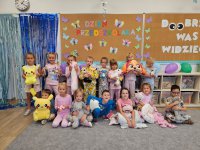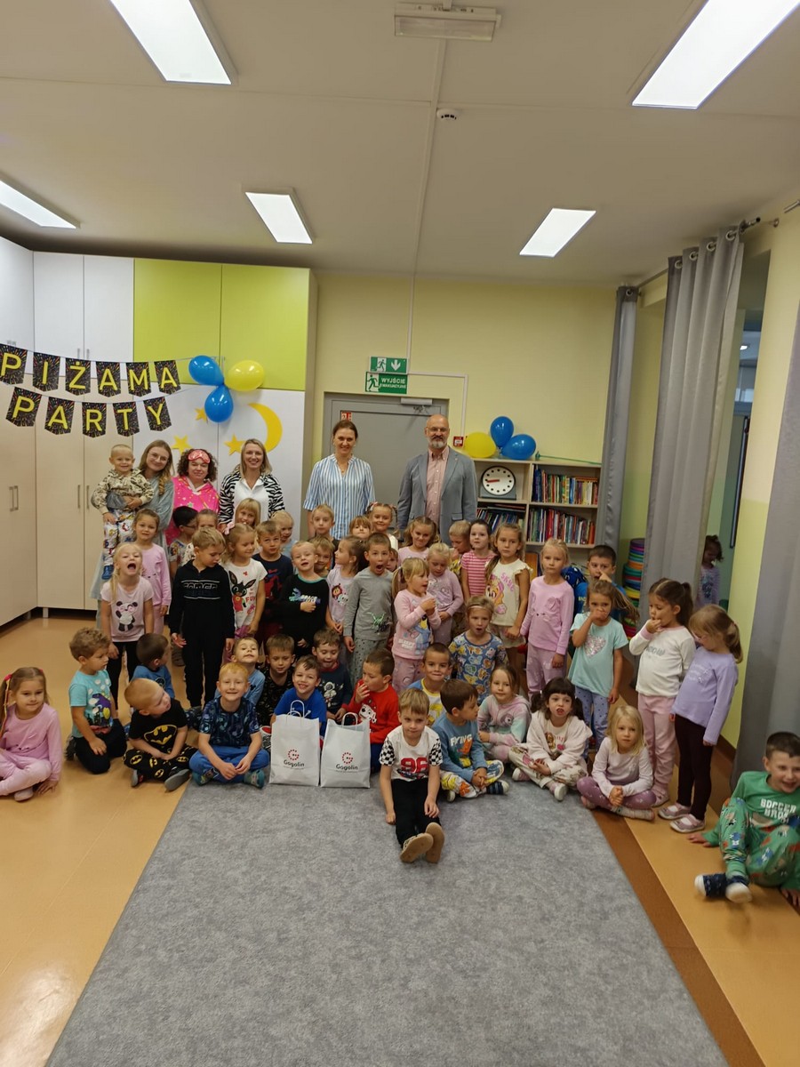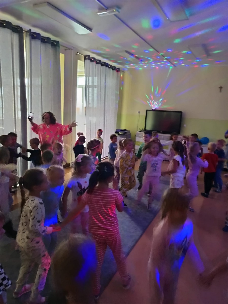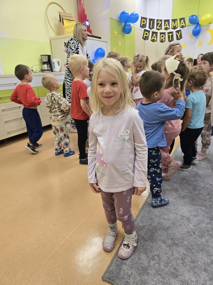 Z tej okazji w naszym przedszkolu zorganizowaliśmy pełen radości i uśmiechu dzień tematyczny w stylu piżama party. Dzieci przyszły ubrane w swoje ulubione piżamki i szlafroki, co od razu wprowadziło wszystkich w wyjątkowo domową i przytulną atmosferę.