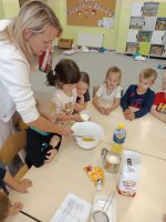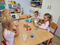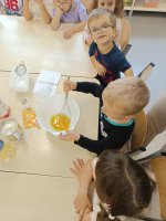 Na zakończenie dnia, dzieci miały okazję samodzielnie uczestniczyć w pieczeniu gofrów. Zapach świeżo wypiekanych smakołyków unosił się w całym przedszkolu, a wspólna degustacja była pysznym zwieńczeniem tego wspaniałego dnia.
