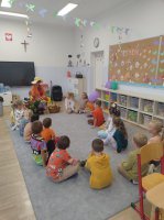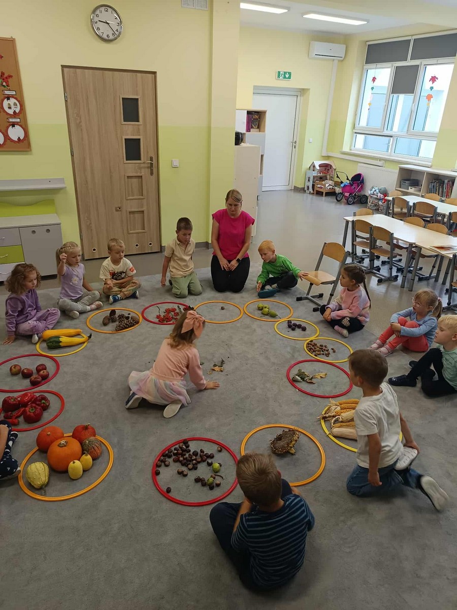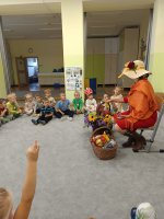 23 września powitaliśmy w przedszkolu jesień. Dzieci przyszły ubrane w jesienne kolory, a Pani Jesień przyniosła koszyk pełen darów. Wspólnie rozwiązywaliśmy zagadki i tworzyliśmy jesienne prace plastyczne. Mamy nadzieję, że jesień przyniesie nam jeszcze wiele radosnych chwil na świeżym powietrzu.