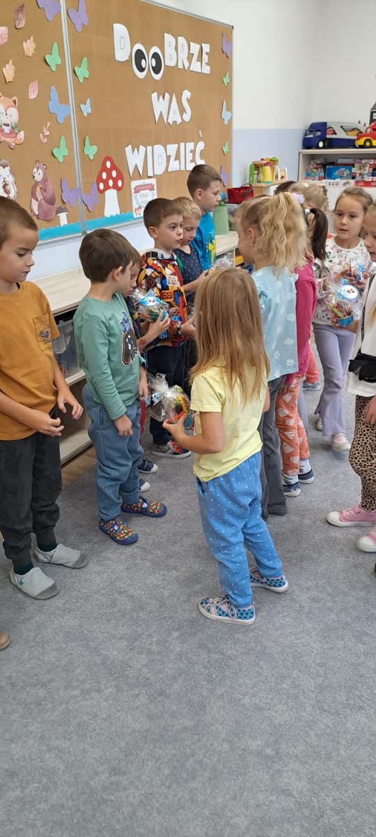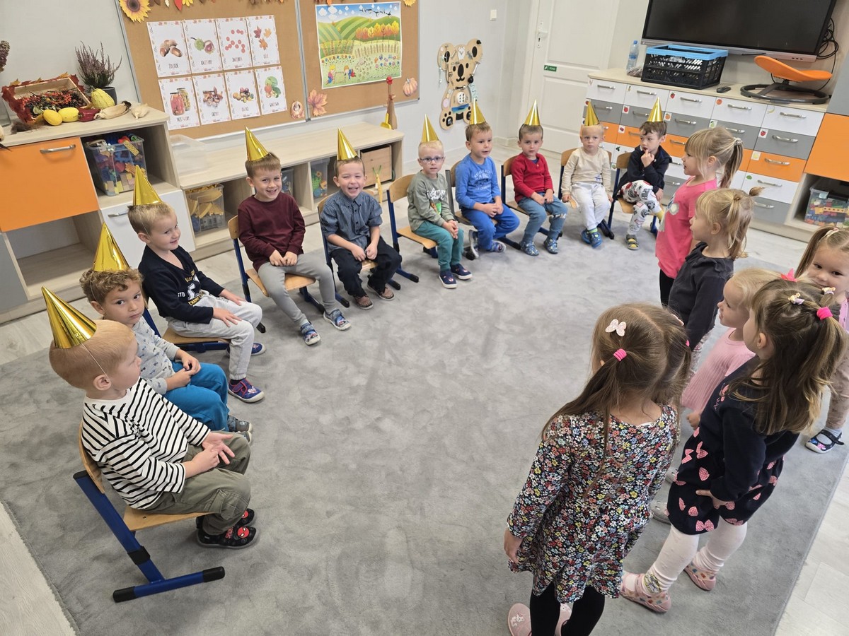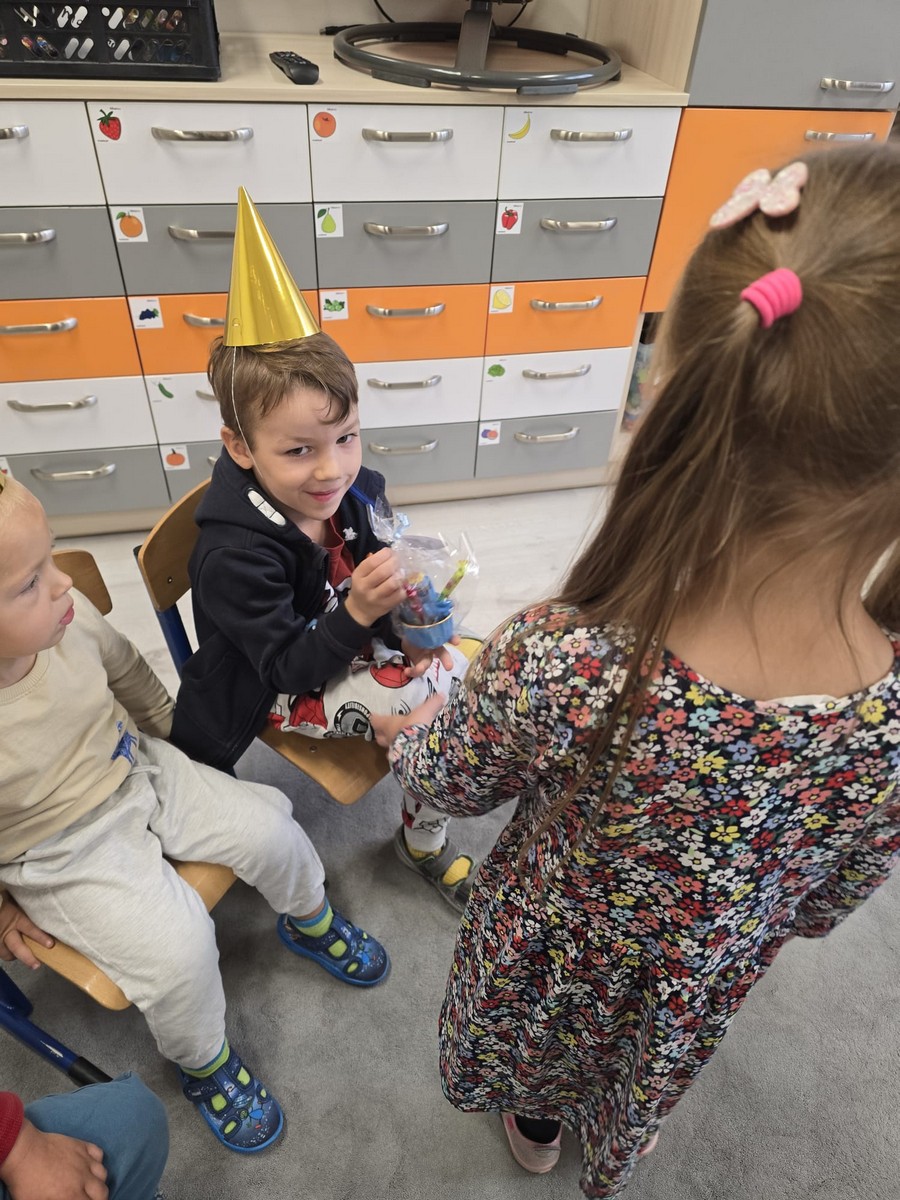30 września 2025 r. w naszym przedszkolu świętowaliśmy Dzień Chłopaka. Dziewczynki przygotowały dla kolegów miłą niespodziankę – zaśpiewały „Sto lat”, złożyły serdeczne życzenia i wręczyły drobne upominki. W każdej grupie panowała radosna atmosfera, nie zabrakło wspólnych zabaw i uśmiechów. Dziękujemy Radzie Rodziców za wsparcie i pomoc w przygotowaniu tego wyjątkowego dnia!