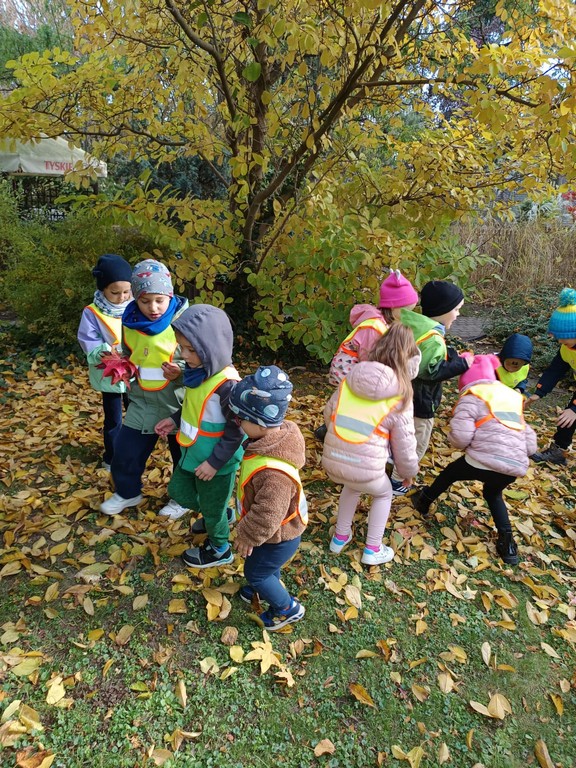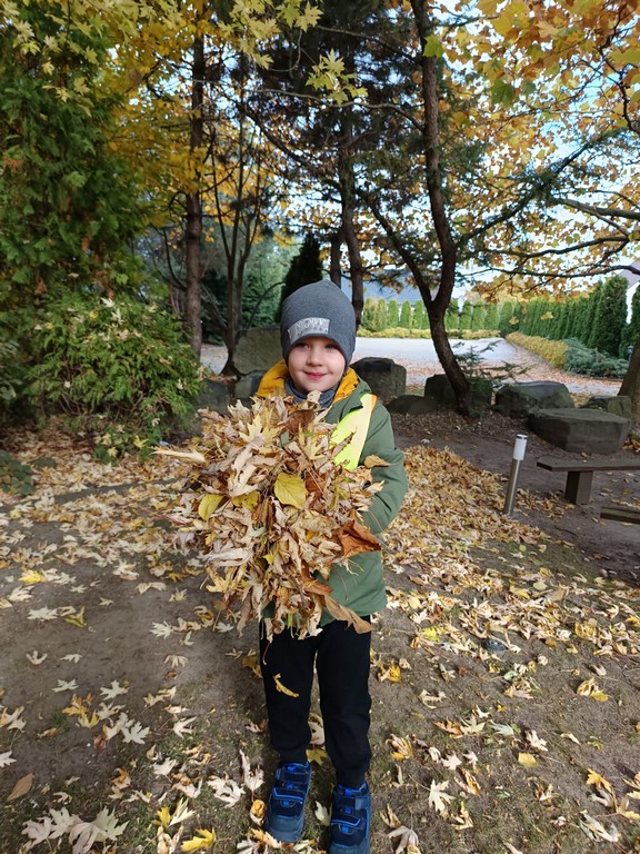 Spacer był nie tylko okazją do zabawy i twórczej aktywności, ale także do nauki – dzieci mogły utrwalić nazwy drzew i ich liści, obserwować zmiany zachodzące w przyrodzie oraz rozwijać wrażliwość estetyczną.
