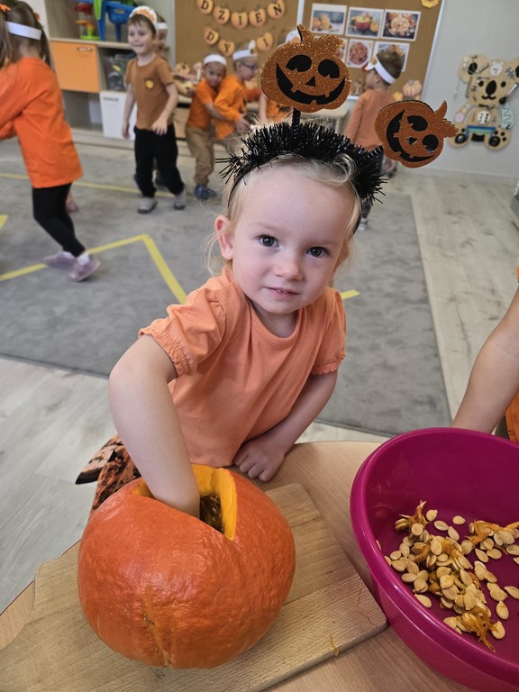 Dzień Dyni był pełen nauki, zabawy i radości. Dzieci poznały dynię z każdej strony – jako warzywo, inspirację artystyczną i składnik pysznych potraw. To była doskonała okazja, by wspólnie świętować jesień i odkrywać jej uroki w przyjaznej, przedszkolnej atmosferze.