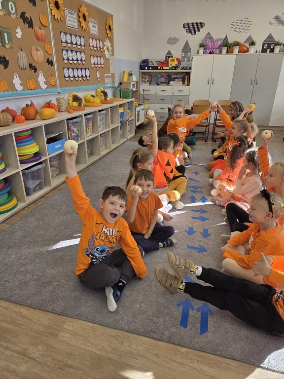 Pod koniec października w naszym przedszkolu odbył się wyjątkowy, pełen koloru i radości Dzień Dyni. Było to święto jednego z najbardziej jesiennych warzyw, które zagościło tego dnia w każdej sali — w zabawach, zajęciach edukacyjnych, pracach plastycznych i kulinarnych.