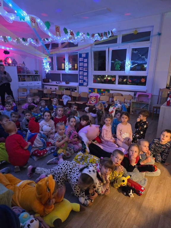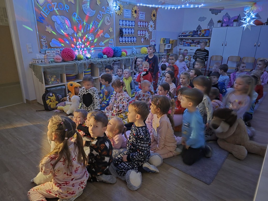 Wieczorem 20 listopada w naszym przedszkolu odbył się „Wieczór Czytania Bajek”, którego celem była popularyzacja czytelnictwa wśród dzieci. Dzieci przyszły do przedszkola ubrane w kolorowe piżamki, niosąc poduszki i ukochane maskotki.