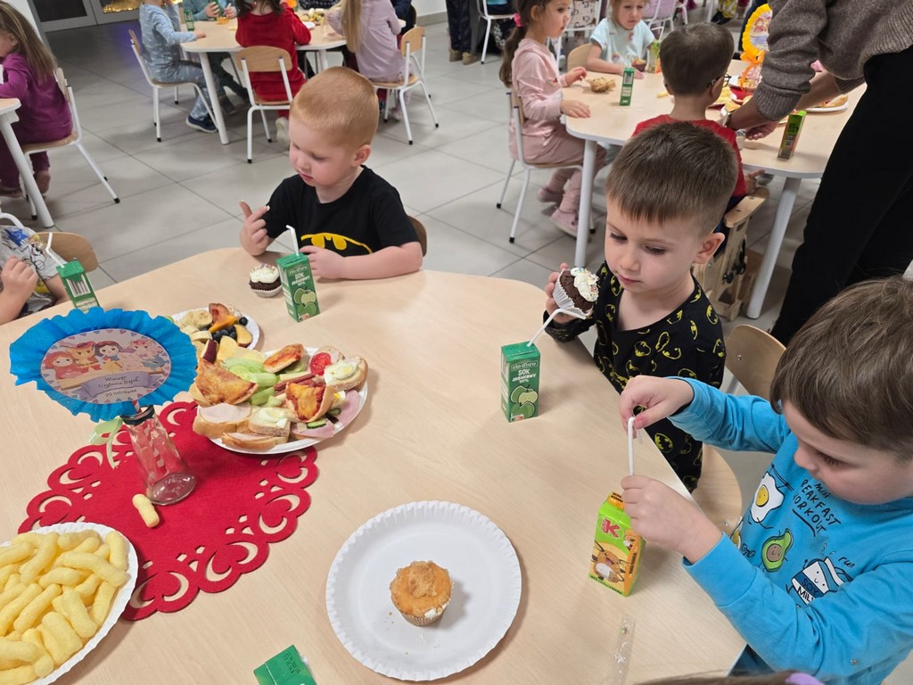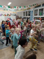 Wieczór upłynął w atmosferze wspaniałej zabawy. Nie zabrakło szalonych tańców oraz przepysznych przekąsek przygotowanych przez rodziców.