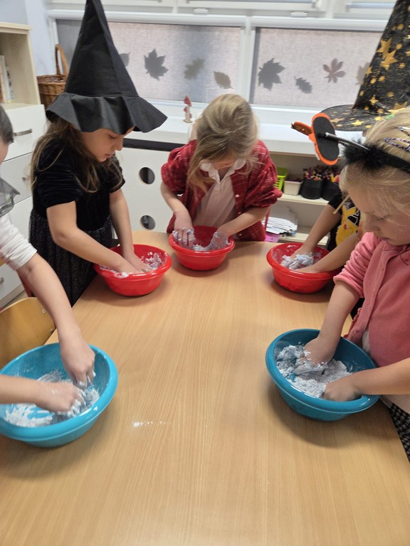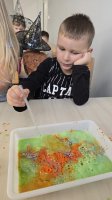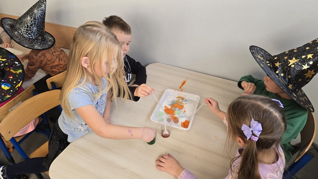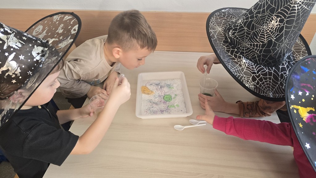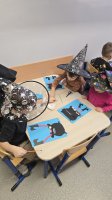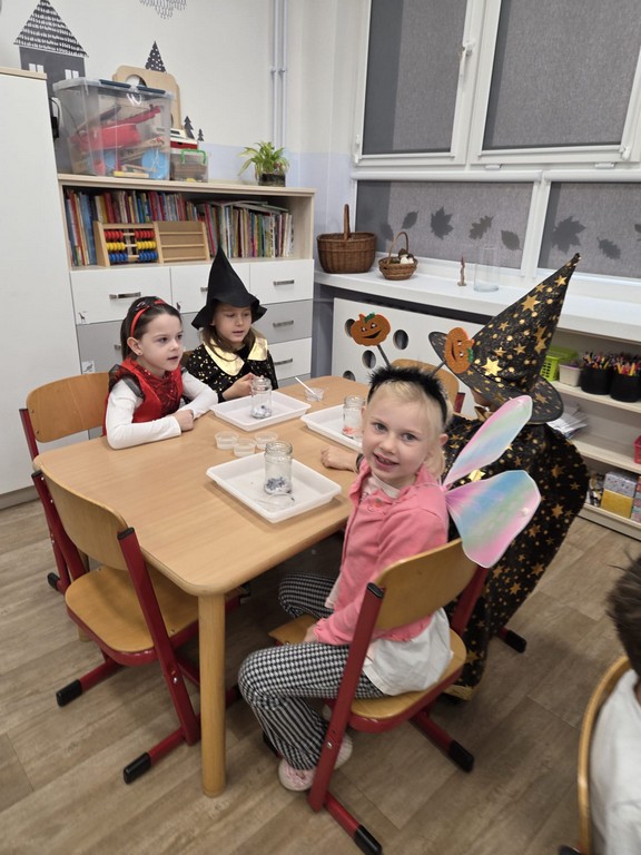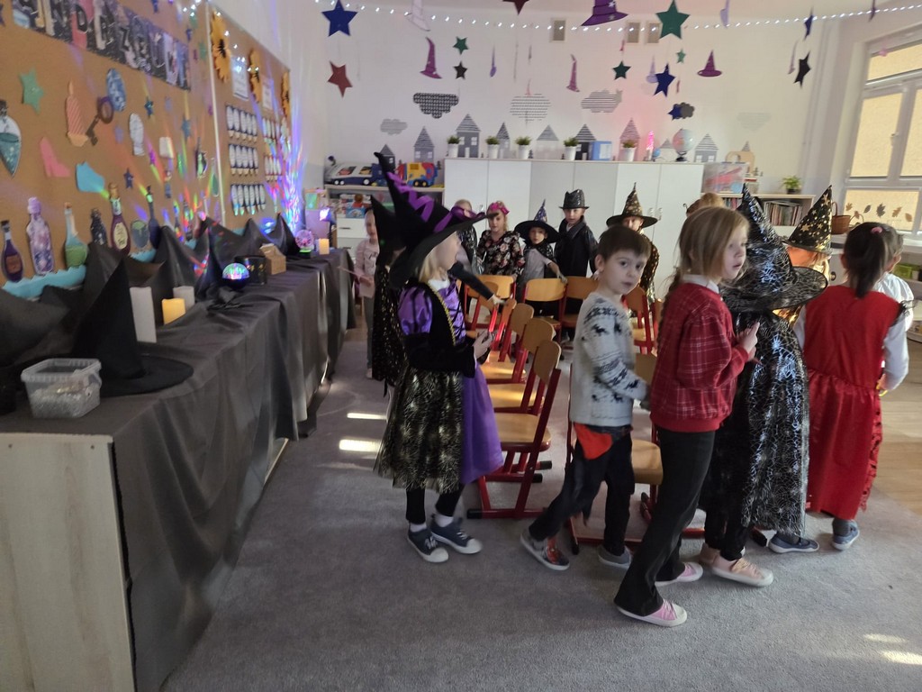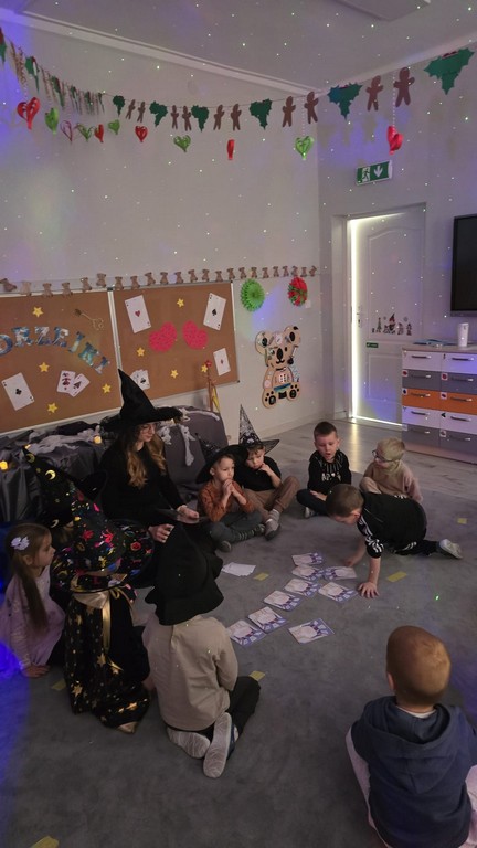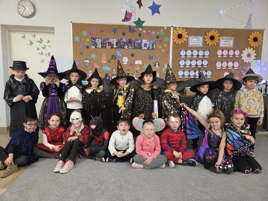 W piątek, 28 listopada, nasze Przedszkolaki przeniosły się w magiczny świat andrzejkowych wróżb. Przebrane za czarodziejów i wróżki, ustawiały buty, losowały atrybuty różnych zawodów i z ciekawością odkrywały, co może je czekać w przyszłości. Chłopcy poznawali imię swojej przyszłej żony, a dziewczynki — przyszłego męża.