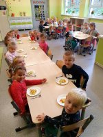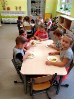 W Biedronkach sezon na pyszne owoce trwa! 29.09.2020 nasze Biedronki własnoręcznie przygotowały pyszną, witaminową sałatkę, bo każdy przedszkolak już wie, jak ważne są dla nas owoce – są smaczne i zdrowe! Dlatego też, ochoczo zabraliśmy się do pracy! Dokładnie umyliśmy rączki, następnie posegregowaliśmy umyte wcześniej owoce. Każdy dostał tackę, nożyk i tak przystąpiliśmy do krojenia. Dzieci samodzielnie kroiły i przyrządzały sałatkę owocową przestrzegając zasad bezpieczeństwa przy posługiwaniu się nożem. Sałatka wszystkim smakowała wyśmienicie – nie wiemy, czy dlatego, że owoce były pyszne, czy dlatego że sami ją przyrządziliśmy?