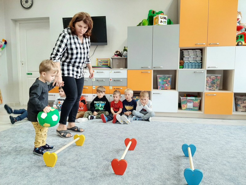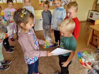 Dzień Chłopaka w przedszkolu obchodziliśmy wyjątkowo uroczyście. Na początek chłopcy ze wszystkich grup wzięli udział w zabawach sportowych. Starszaki bawiły się na basenie, gdzie mogli pograć w wodną piłkę. Czekały też na nich gry i zabawy wodne. Średniaki i maluchy uczestniczyły w przedszkolu w zabawach. Konkurencji było wiele, między innymi: kopanie piłki do bramki, rzut woreczkami do obręczy, kopanie balona między pachołkami (tak, aby balon upadł jak najmniej razy na podłogę), skakanie jak najdalej. Chłopcy musieli wykazać się również innymi umiejętnościami, np. w liczeniu- policzyć sztangi na obrazkach, w tańczeniu- wykonać taniec robota czy wykazać się błyskotliwością w odgadywaniu marek samochodów. Po skończonych konkurencjach chłopcy zostali odznaczeni medalami Super Chłopaka, otrzymali dyplomy i zapozowali do wspólnego zdjęcia (chętni chłopcy zapozowali z ,,wąsem”, co wzbudziło wiele radości). Na koniec dziewczynki zaśpiewały chłopcom ,,Sto lat” i wręczyły upominki.