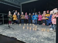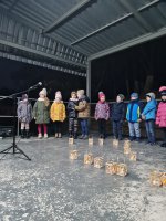 W dniu 11.11.2021 dzieci z naszego przedszkola brały udział w obchodach Dnia Świętego Marcina. Uroczystość rozpoczęła się od Mszy Świętej w Parafii p.w. Podwyższenia Krzyża Świętego w Malni. Dzieci dowiedziały się kim był św. Marcin i jaka jest tradycja obchodzenia jego święta. Następnie, za Św. Marcinem na koniu udaliśmy się z lampionami do Odrowąża, gdzie na scenie przedszkolaki zaśpiewały i powiedziały wierszyki o Św. Marcinie.
