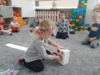 Dzieci z grupy: Misie znają już wszystkie urządzenia domowe i wiedzą do czego służą. W miniony wtorek zrobiliśmy podczas zajęć wielkie pranie. Dzieci z radością brały udział w zabawie, w której prały, a następnie prasowały każde ubranko.