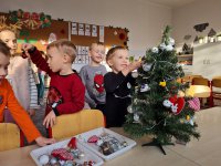 Okres przedświąteczny to w grupie Motylków czas intensywnych przygotowań do świąt. Podczas zajęć dzieci poznają tradycje bożonarodzeniowe i związane z tym świętem obyczaje panujące w Polsce. Choinka, Mikołaj, prezenty, stół wigilijny to główne motywy przewodnie grudniowych prac plastycznych naszych przedszkolaków. Dzieci wykonują ozdoby świąteczne, dekorują pierniczki, ubierają wspólnie choinkę. Przedszkolaki uczą się także pilnie swoich ról aby pięknie zaprezentować się w świątecznym przedstawieniu dla rodziców. Grudzień to wyjątkowy czas, kiedy dzieci mogą poczuć „magię świąt”.