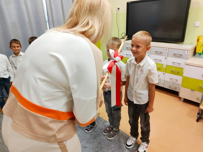 Dzieci zaprezentowały swoje umiejętności wokalne, recytatorskie i taneczne przed Panią Dyrektor oraz zaproszonymi gośćmi. Następnie złożyły uroczyste ślubowanie a Pani Dyrektor dokonała uroczystego pasowania. Na pamiątkę tak ważnego wydarzenia wręczyła każdemu dziecku dyplom i mały upominek.