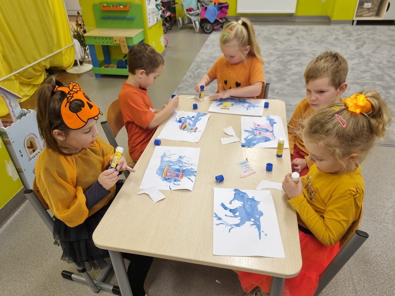 - Wykonujemy przeróżne prace plastyczne, np. z wykorzystaniem rurek i farb: kałuże i kalosze