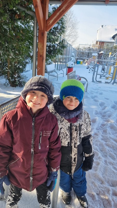 Wreszcie spadł długo oczekiwany przez najmłodszych śnieg. Pani Zima w tym roku przyszła szybko i sprawiła nam wielką radość. Starszaki postanowiły skorzystać z zimowej pogody i wesoło bawiły się na śniegu.