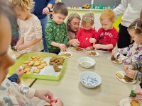 Okres przedświąteczny to w każdym przedszkolu czas intensywnych przygotowań do świąt. Podczas zajęć dzieci poznają tradycje bożonarodzeniowe i związane z tym świętem obyczaje panujące w Polsce. Choinka i prezenty to główne motywy przewodnie grudniowych prac plastycznych naszych przedszkolaków. Dzieci wykonują proste ozdoby świąteczne, dekorują pierniczki, ubierają wspólnie choinkę, codziennie odczytują zadania z kalendarza adwentowego oraz intensywnie przygotowują się do występu podczas Jasełek. Przedszkolaki uczą się śpiewać tradycyjne kolędy. Grudzień to dla maluchów wyjątkowy czas, gdzie mogą poznać tradycję Świąt Bożego Narodzenia, poczuć „magię świąt”.