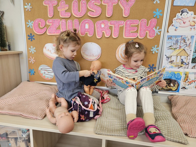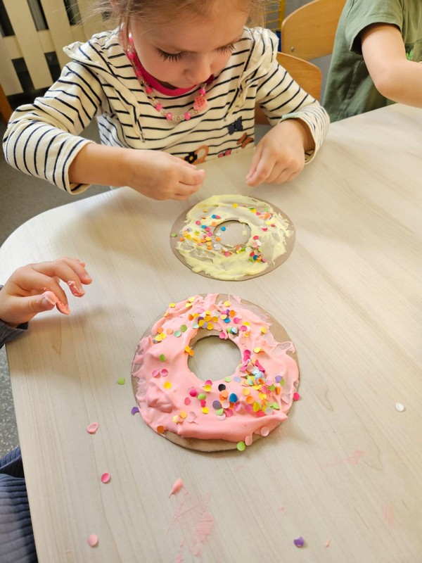 Wychowankowie dowiedzieli się kiedy wypada tłusty czwartek i co to za święto. Skąd wzięła się tradycja Tłustego Czwartku i dlaczego jemy w tym dniu pączki lub faworki. Tłusty czwartek rozpoczyna świętowanie ostatnich dni karnawału, czyli ostatków. Poprzedza środę popielcową. Dzieci wykonały prace plastyczne w postaci pączków oraz oponek, które starannie ozdobiły.