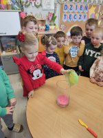 Dzień tęczy obchodzimy 3 kwietnia. Wyjątkowo piękne zjawisko optyczne i meteorologiczne. Podczas tęczowego dnia grupa Misie dowiedziała się jak powstaje tęcza, jak kolory są w niej ułożone i który z nich jest najważniejszy. Dzieci wysłuchały także krótkiej pogadanki oraz oglądały ilustracje przedstawiające to niezwykłe zjawisko. Dowiedziały się także że tęcza jest okrągła a na koniec wykonaliśmy bardzo ciekawy tęczowy eksperyment.