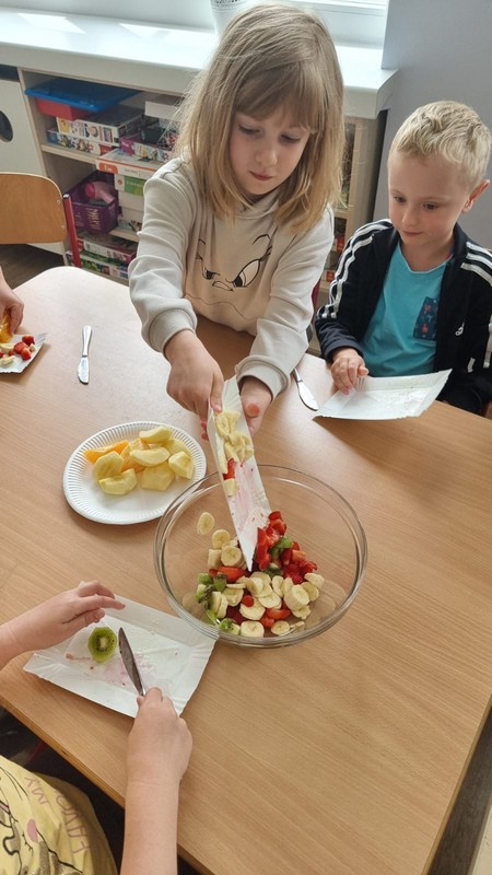 W bieżącym roku szkolnym nasze przedszkole po raz drugi przystąpiło do realizacji ogólnopolskiego programu edukacyjnego „Skąd się biorą produkty ekologiczne?”. Podczas zajęć dzieci dowiedziały się co to jest ekologiczne rolnictwo, dlaczego warto wybierać żywność ekologiczną, nauczyły się rozpoznawać po znaku wybrane produkty ekologiczne, a także utrwaliły wiedzę na temat zasad higieny i zdrowego stylu życia. Dopełnieniem zajęć było zrobienie sałatki owocowej z ekologicznych owoców.